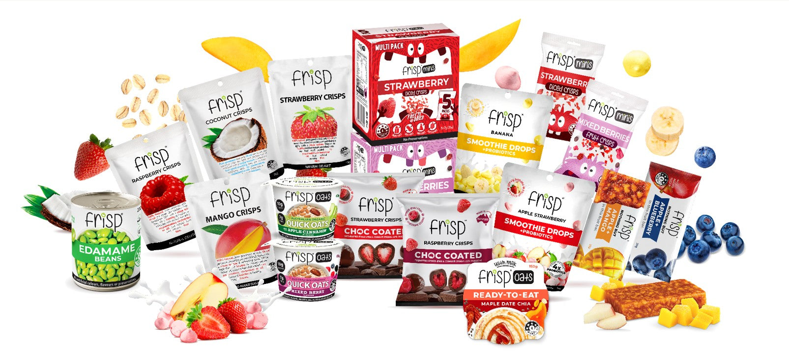 Frisp offers a diverse portfolio of clean, delicious products designed for every eating occasion. Our range includes: Freeze-dried fruits and real fruit bars, High-protein & convenient on-the-go breakfast options, Guilt-free indulgences (e.g., chocolate-coated freeze dried strawberry & Raspberry) and Pantry staples